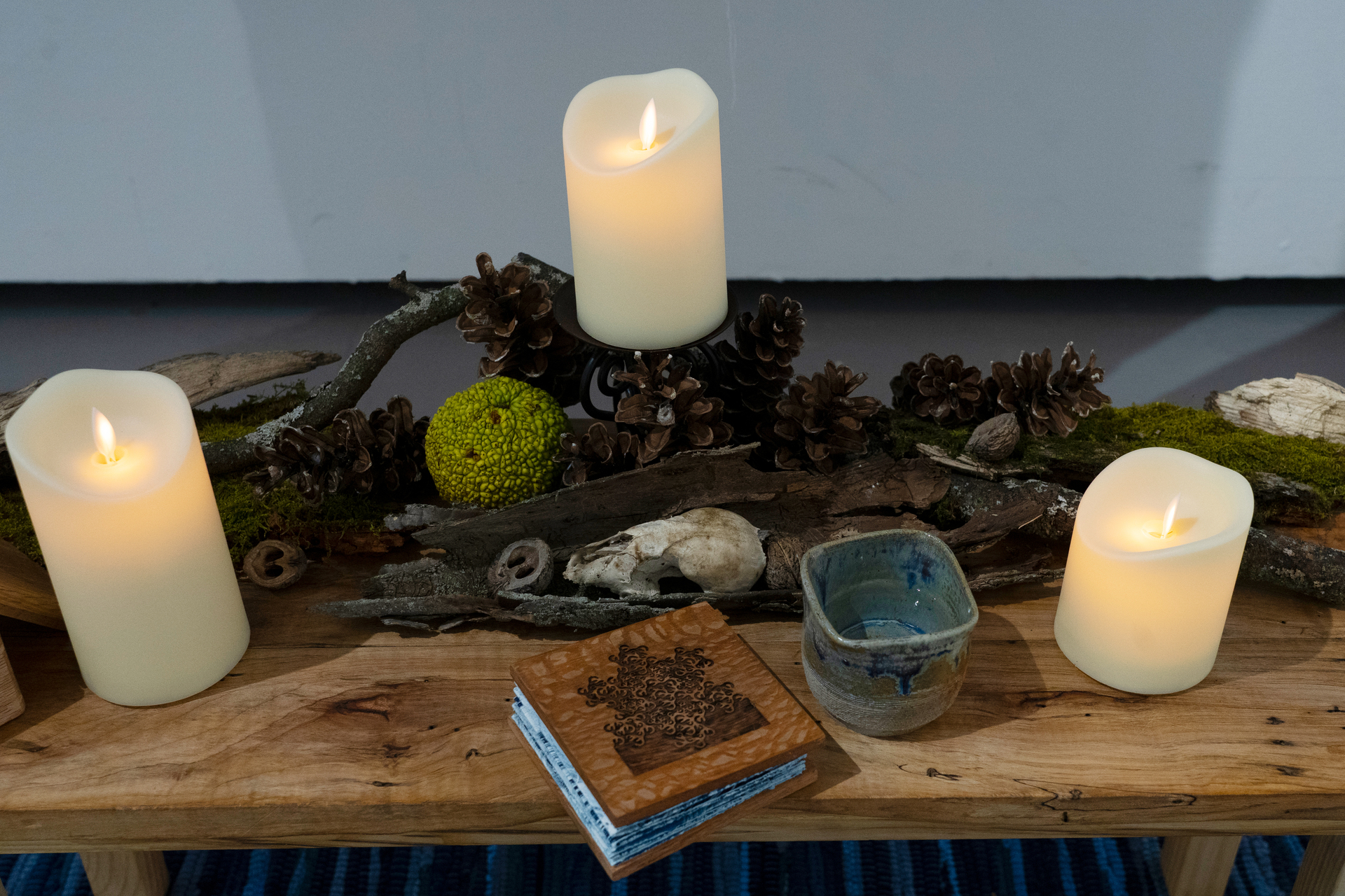 The natural elements of this altar setting were gathered on the day of the exhibition, on a walk with my grandmother and two of my closest friends from my time at Oberlin.